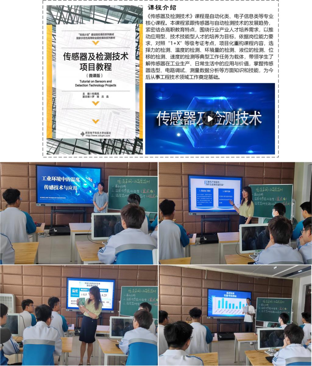 团队深耕《传感器及检测技术》课程建设,打造“精品课程—新形态教材—数字化资源”三位一体的教学体系。该课程于2023年被评为陕西省职业教育在线精品课程,2024年获得陕西省职业教育课程思政示范课程荣誉称号。团队主持及参与编写教材、专著11部,其中“十四五”职业教育国家规划教材1部、“十四五”职业教育省级规划教材1部、陕西省优秀教材1部,其项目化设计和新形态资源深度融合,成为“岗课赛证”融通育人的创新典范,进一步夯实“课程链—产业链—人才链”协同发展的育人根基。