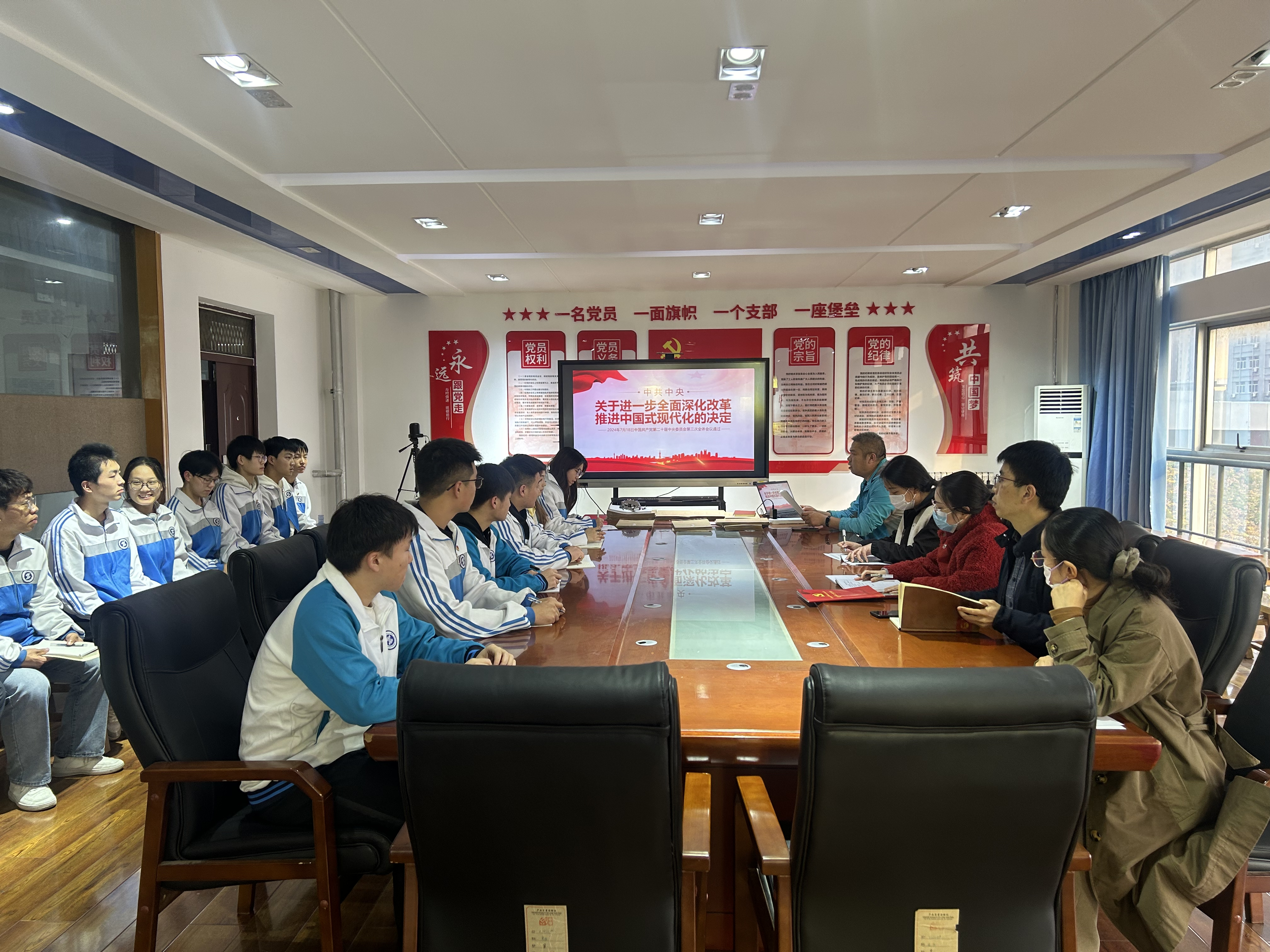 为全面深入学习贯彻党的二十届三中全会精神,进一步领悟习近平新时代中国特色社会主义思想,11月6日,电气工程学院党总支学生党支部全体党员在行知楼A506开展了“学习贯彻党的二十届三中全会精神”主题党日活动。2024年下半年发展对象培训班成员、入党积极分子代表参会。