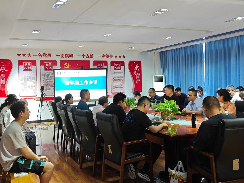 会议伊始,夏院长首先代表学院向全体教师致以新学期的问候和期望。他回顾了过去一年学院在教育教学、科学研究、社会服务等方面取得的显著成绩,并强调指出,这些成就离不开每一位教师的辛勤付出与无私奉献。随后,刘书记就新学期学生工作与党建工作进行了详细部署。刘书记要求各基层党组织要充分发挥战斗堡垒作用,加强党员队伍建设,以高质量党建引领学院各项工作高质量发展,为学院营造良好的政治生态和育人环境。他强调,要进一步强化学生思想政治教育,促进学生全面发展,要引导学生树立正确的择业观、就业观,为区域经济发展贡献力量。董院长围绕科研工作和培训工作发表了讲话,转达了学校召开的党的二十届三中全会精神暨“新双高”创建推进会会议精神。他分析了当前科研领域的发展趋势,并指出学院科研工作的新方向、新任务。董院长强调,要聚焦“新双高”建设要求,围绕落实立德树人根本任务、全面深化产教融合、打造职教“五金”、开辟国际交流新赛道、构建数字化新生态。教学办、实训中心分别就开学工作做了具体的部署。