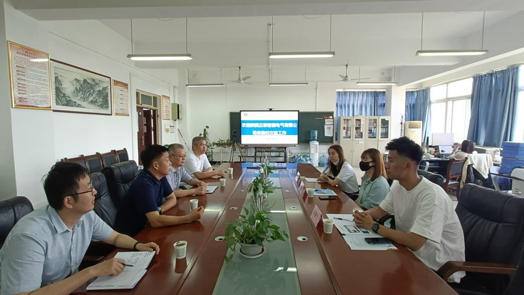 2023年6月8日下午,正泰智能电气有限公司人事经理刘雪婷及招聘主管祁如玉等一行来我校进行校企合作交流。电气工程学院书记韩伟、院长夏东盛、学工办主任赵松及毕业年级辅导员老师参加了此次座谈会。会议在行知楼502室召开,由赵松主任主持。