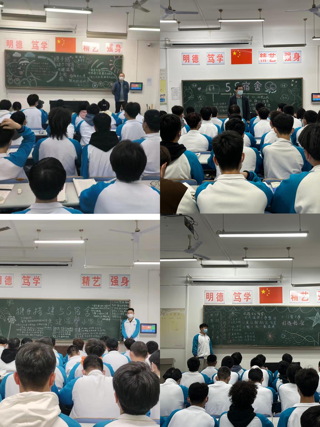 为给同学们营造卫生整洁干净、舒适优雅的居住环境,预防各种传染病的滋生和传播,3月5日晚 ,电气学院组织全体在校学生开展“携手搭建5S宿舍,共建温馨小家庭”主题班会,班会由各班班主任主持召开。