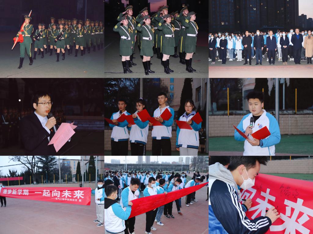 2月28日清晨,伴着和煦春风,电气工程学院在学校操场组织开展“国旗下的成长”主题教育活动,此次活动的主题为“逐梦新学期,一起向未来”。团委书记赵双军、电气学院副院长董佳辉、学工办主任赵松、全体辅导员、预备党员、入党积极分子及学生代表共500余人参加了此次活动。