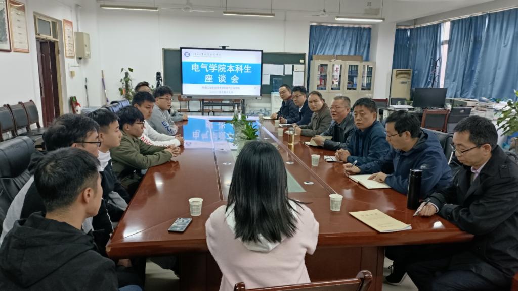 为了有效提升与西安工程大学联合举办的本科学生的培养质量,10月19日下午,就大家关心的教育教学、升学就业、学习生活等方面的问题,电气工程学院在行知楼A502组织召开联办本科学生座谈会,校学工部部长、学生处处长郝军、就业指导处处长卢文澈、电气工程学院党总支书记韩伟、院长夏东盛、副院长董佳辉、教学办主任张维、学工办主任赵松、电气2201班班主任赵瑞林及本科班部分学生代表参加本次会议,会议由学院党总支书记韩伟老师主持。
