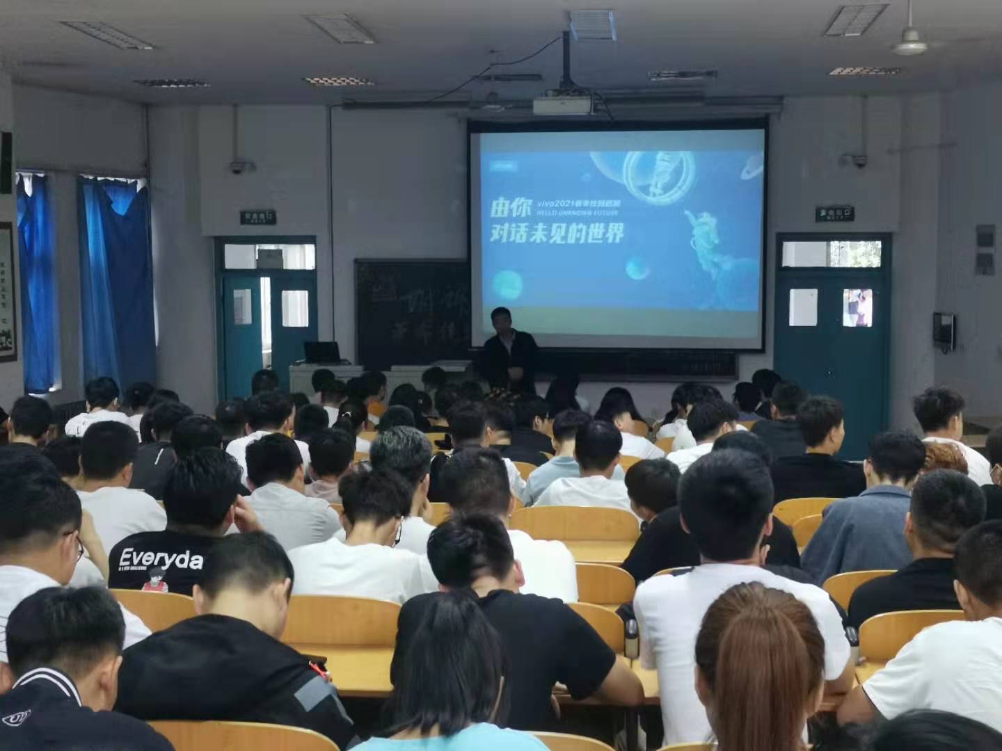会上,朱经理详细介绍了vivo移动通信有限公司相关概况,从企业发展状况、生产管理、产品研发、企业文化等方面都做了详细的讲解,随后他针对本次招聘岗位、晋升路径、薪资待遇等进行了着重介绍。本次向电气学院提供就业岗位80个,同学们积极向朱经理提问发展空间、培训方式等问题,朱经理进行一一解答。