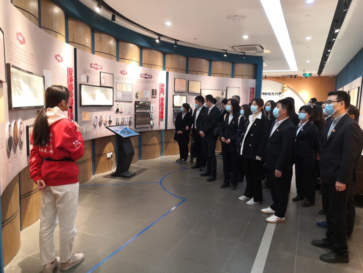 在讲解员的带领和细致讲解下,先后参观了溯源、西迁、致远三个展厅,“从南洋走来”到“与国家民族同向同行”,从“永远飘扬的旗帜”到习近平总书记对西迁精神做出的重要指示,党员同志们仔细聆听了每一幅历史图片和每一件珍藏品背后鲜为人知的故事,大家在展品前不时驻足停留,用心体会每一份手稿讲义和实物资料上的文字,并进行相互交流,深刻体会“胸怀大局,无私奉献,弘扬传统,艰苦创业”的“西迁精神”。
