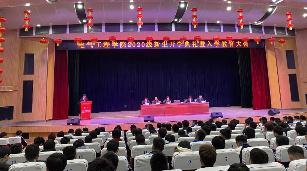 11月23日晚,电气工程学院在明德堂举行2020级新生开学典礼暨入学教育大会,学生处副处长耿丽、电气工程学院院长夏东盛、党总支书记杜云、教务科科长徐军纪、电气学院教学办主任张维、实训中心主任董佳辉,2020级辅导员、班主任及680名新生参加会议,会议由党总支书记杜云主持。