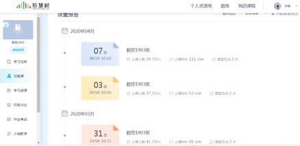学生基本能够按时完成智慧树平台中共享课程中的视频资源、PPT、相关教学资料等任务的学习,课后基本能够完成教师按排相关教学内容的学习,少部分未完成学习任务的同学,老师通过智慧树平台和班级QQ直播授课群及时进行提醒。新的授课任务开始前大部分学生能够提前进行相关课程的预习,完成老师布置的相关学习任务。