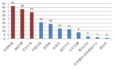 随着4-6周新增在线课程的全面运行,在线教学形式进一步多样化,经过统计目前运行的在线课程分别使用智慧职教、学堂在线、智慧树、超星平台、QQ直播、雨课堂、传智播客-高校教辅平台、腾讯会议、微知库、钉钉直播、学银在线等10余种在线教学平台及直播平台,其中智慧职教42门次、QQ直播38门次、学堂在线34门次,排名前三名。有平台统计数据发现,教师授课已经开始从单纯依靠在线课程平台向“平台+直播”的形式转变,其中电气学院使用“平台+直播”相结合的班级达到45门次。