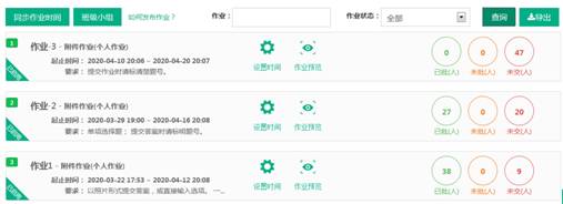 作业通过“知到”课程群,微信群、课程平台等收交、批改、统计。