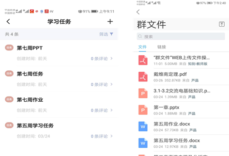 每周老师提前通过微信群、“知到”课程群、“知到”翻转课堂等发布安排本周学习任务,重、难点。学生需完成相应任务(课程PPT,“知到”学习平台学习视频,电子讲义等相关学习资料)。
