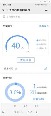 学生基本能够按时完成平台的视频资源、PPT、相关讲义、电子教材等任务的学习,并且对其中的知识点进行评价,课后能够完成课堂检验测试环节,部分未完成的同学,老师通过微信群及时进行提醒。