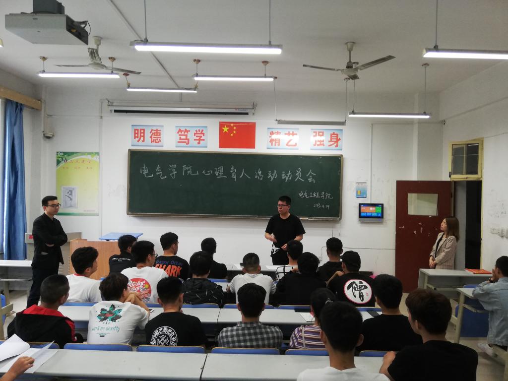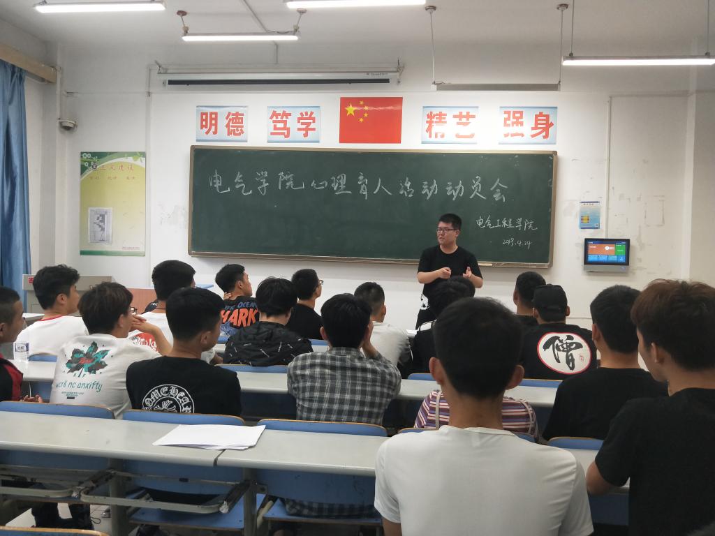 为保证我院第四届“阳光护航”心理育人活动顺利有效开展,培养学生健全的心理素质,营造健康和谐的校园氛围,4月24日下午,电气学院组织18级各班班长及心理委员于崇文南楼C开展心理育人专项活动动员大会。