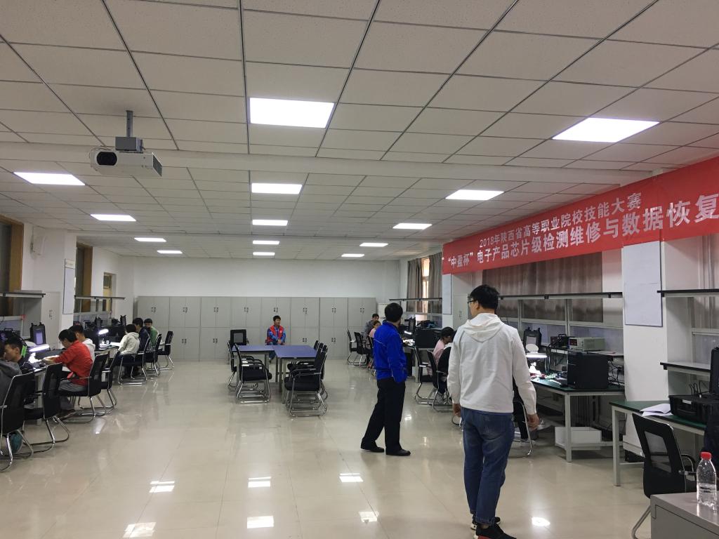 3月27日上午,2018年陕西省高等职业院校技能大赛“电子产品芯片级检测维修与数据恢复”赛项在行知楼A顺利进行。本次赛项由陕西省教育厅主办,中盈有限公司技术支持,共有来自西安航空职业技术学院、陕西国防工业职业技术学院、陕西电子科技职业学院、西安铁路职业技术学院及我院等9所高职院校的20支代表队参加。