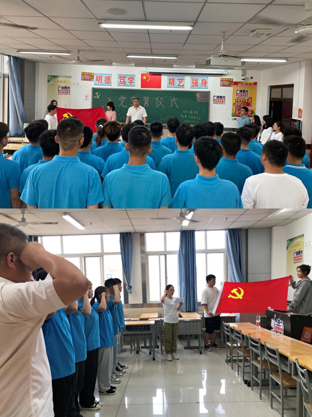 仪式在庄严的《国际歌》声中开始,夏远贵老师代表党委宣读中共陕西工业职业技术学院学生工作委员会《关于接收预备党员的审批意见》。紧接着由李小燕老师带领预备党员们面向党旗进行庄严宣誓。宣誓仪式结束后,新党员同志进行了表态发言。