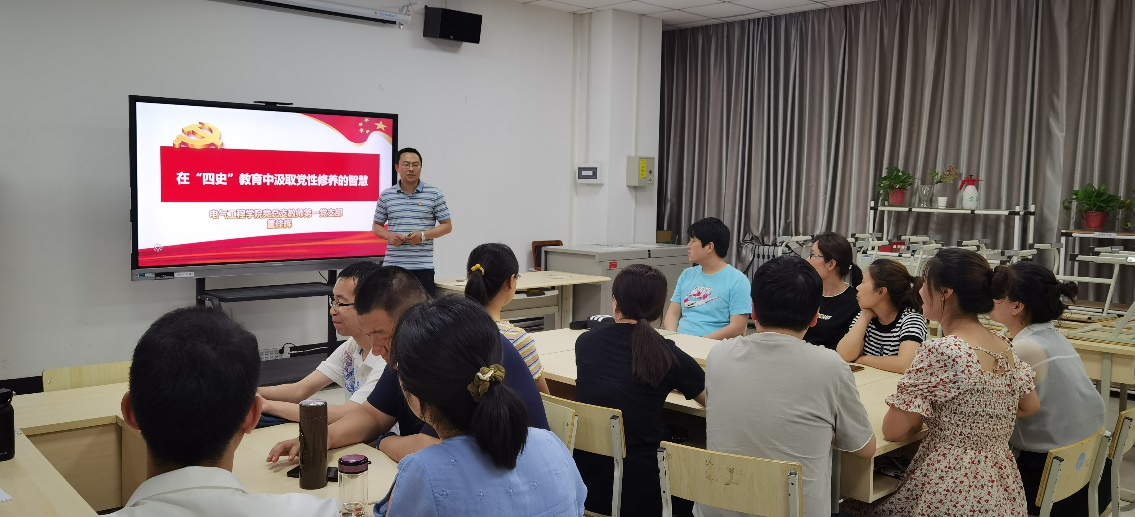 6月9日,为深入开展党史学习教育,迎接建党100周年,电气党总支教师第一支部书记开展以“在‘四史’教育中汲取党性修养的智慧”为主题的党史学习教育暨支部书记讲党课活动。