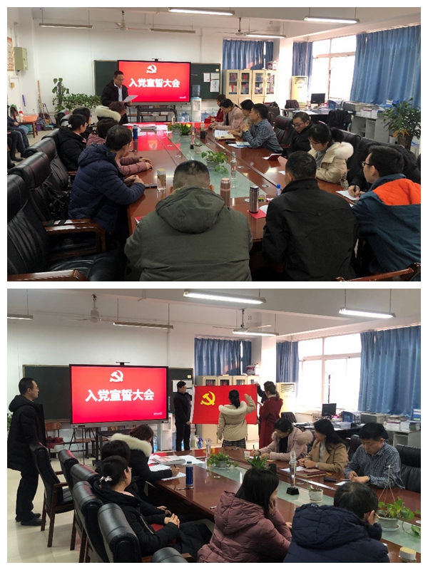 仪式在庄严的《国际歌》声中开始,首先组织部甘蓉同志宣读了学院党委《关于接收罗瑜为预备党员的批复意见》,随后预备党员罗瑜同志面对着鲜艳的党旗庄严宣誓,表达了对党的无限崇敬之情。宣誓仪式结束后,罗瑜同志进行了表态发言。最后,杜云书记寄语新入党的青年教师并对全体党员提出三点希望,一是全体党员要牢记誓词,不忘初心,认真履责,要在今后的工作中,以实际行动来践行入党誓词,老党员做好传帮带作用,二是新党员要高标准严格要求自己,虚心向老党员学习;三是全体党员要发挥旗帜引领作用,一个党员就是一个标杆,一个党员就是一个榜样,一个党员就是一面旗帜,全体党员要在学院的工作中充分发挥党员的先锋模范作用,无愧于共产党员的光荣称号 。