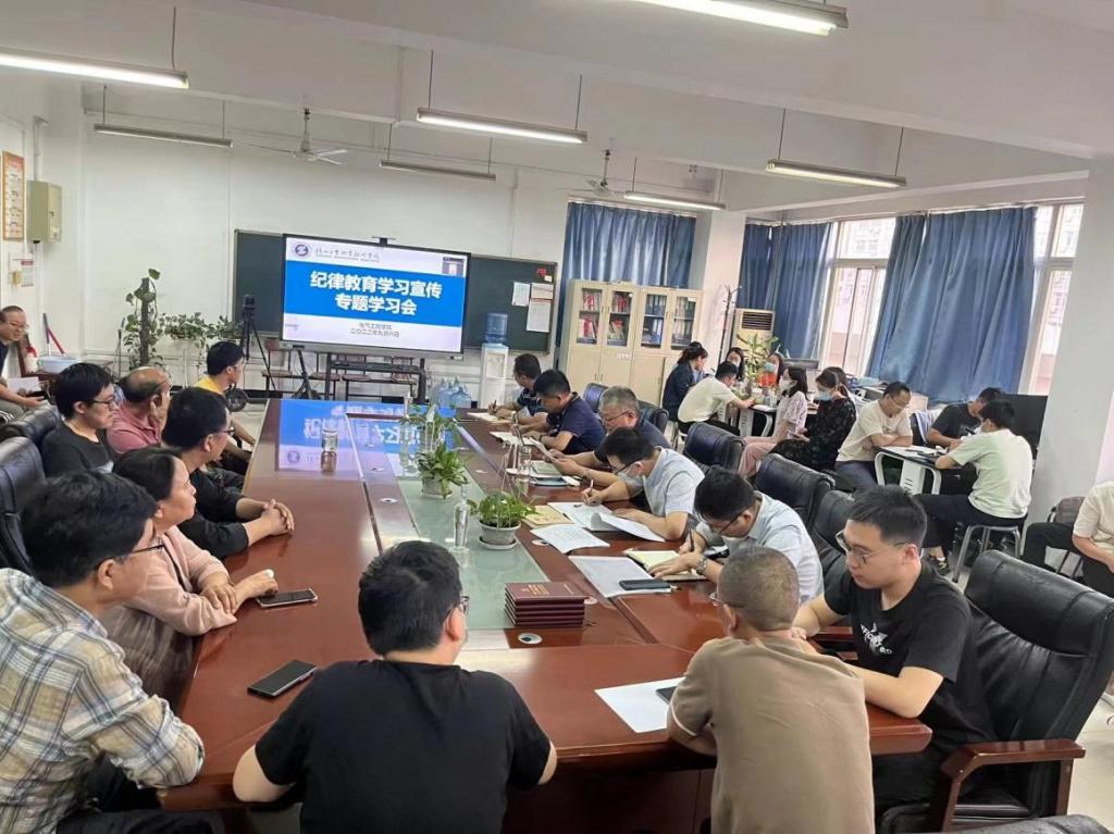 为学习贯彻习近平总书记关于加强纪律教育的重要论述,全面贯彻党的十九大和十九届历次全会精神,贯彻落实习近平总书记来陕考察重要讲话重要指示精神,根据学校关于开展纪律教育学习宣传月活动的要求,9月8日下午,电气工程学院党总支在行知A楼502召开以“严守纪律规矩、加强作风建设”为主题的纪律教育专题会议,全体党员参加了会议。会议由党总支书记韩伟主持。