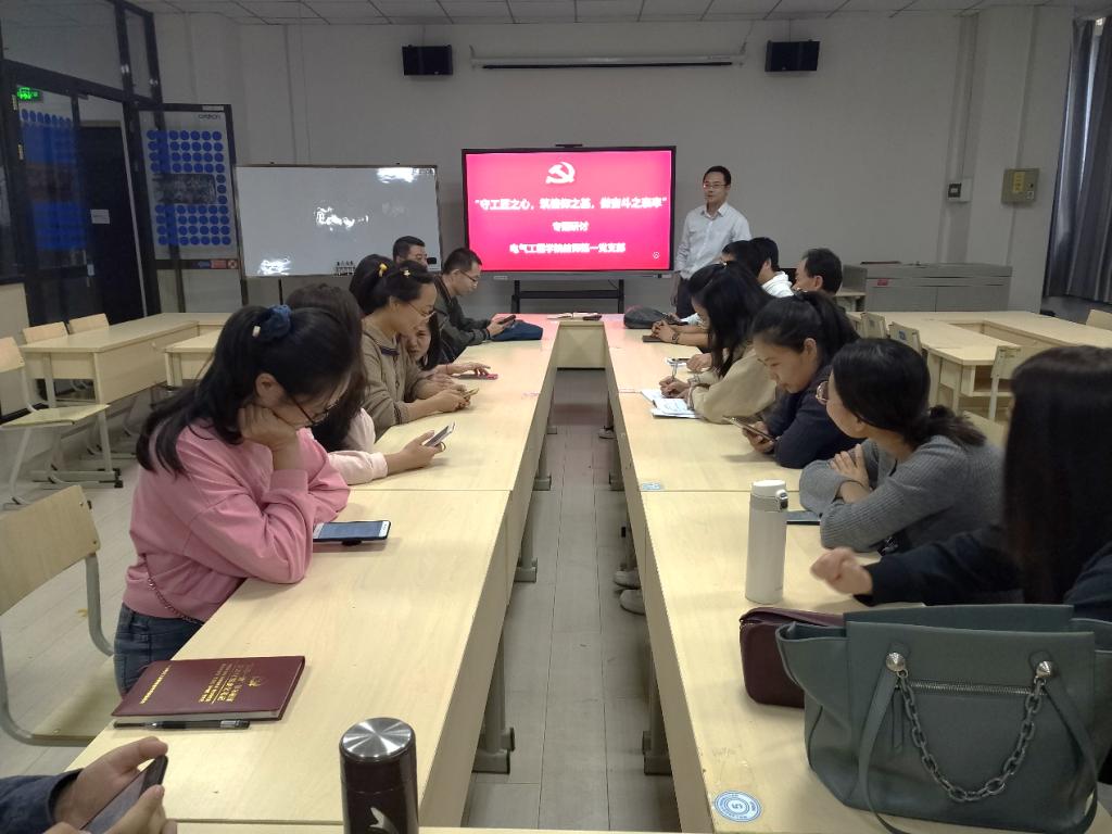 为深入贯彻落实中共陕西工业职业技术学院纪律检查委员会文件《关于开展第三个纪律教育学习宣传月活动的通知》要求,9月23日电气工程学院教师第一党支部在行知楼A欧姆龙教室组织开展了“践廉洁、勇担当”主题研讨活动。活动由教师第一党支部书记董佳辉主持。