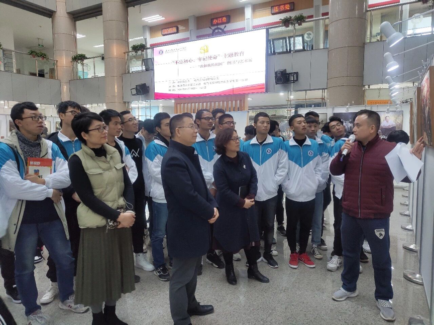 展览期间,学院党委书记惠朝阳同志莅临展览现场,与电气工程学院学子一同观展,并指出将艺术画作与历史背景结合起来讲故事的效果很好,同时本次艺术展展出的21幅画作,包含了新中国成立以来至今各个历史时期重大历史题材的大型主题性美术作品,也可以作为课程思政的一种方式,对青年学子、党员能起到很好的教育作用。