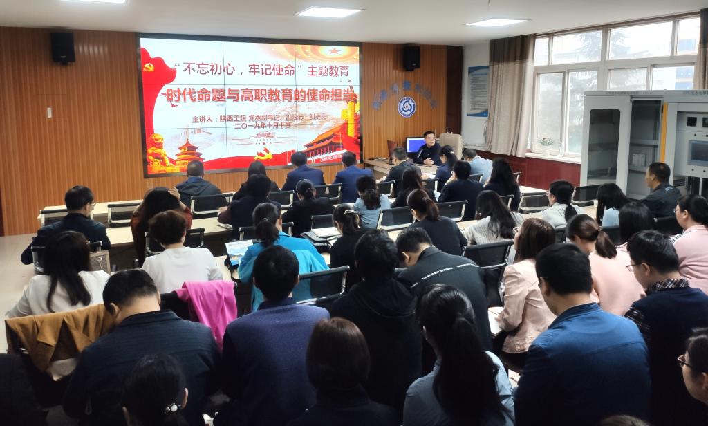 刘永亮书记围绕时代命题的内涵、大学功能与使命、文化自信与精神传承和高职教育的使命担当等四个方面内容讲述了我们要培养什么样的人、如何培养人、为谁培养人,我们要办什么样的大学、怎样办好大学,并结合大学的功能和使命与我党在历史各个时期所形成和传承的精神文化,回答了当前建设中国特色高水平职业院校背景下如何将红色文化与工匠精神结合进行文化育人。最后刘书记希望广大教师党员以立德树人为根本任务,坚持文化自信、传承红色基因,明确目标任务,培养合格的建设者和接班人,为高职教育的跨越发展贡献陕西工院人的智慧,为学校的发展贡献自己的力量。