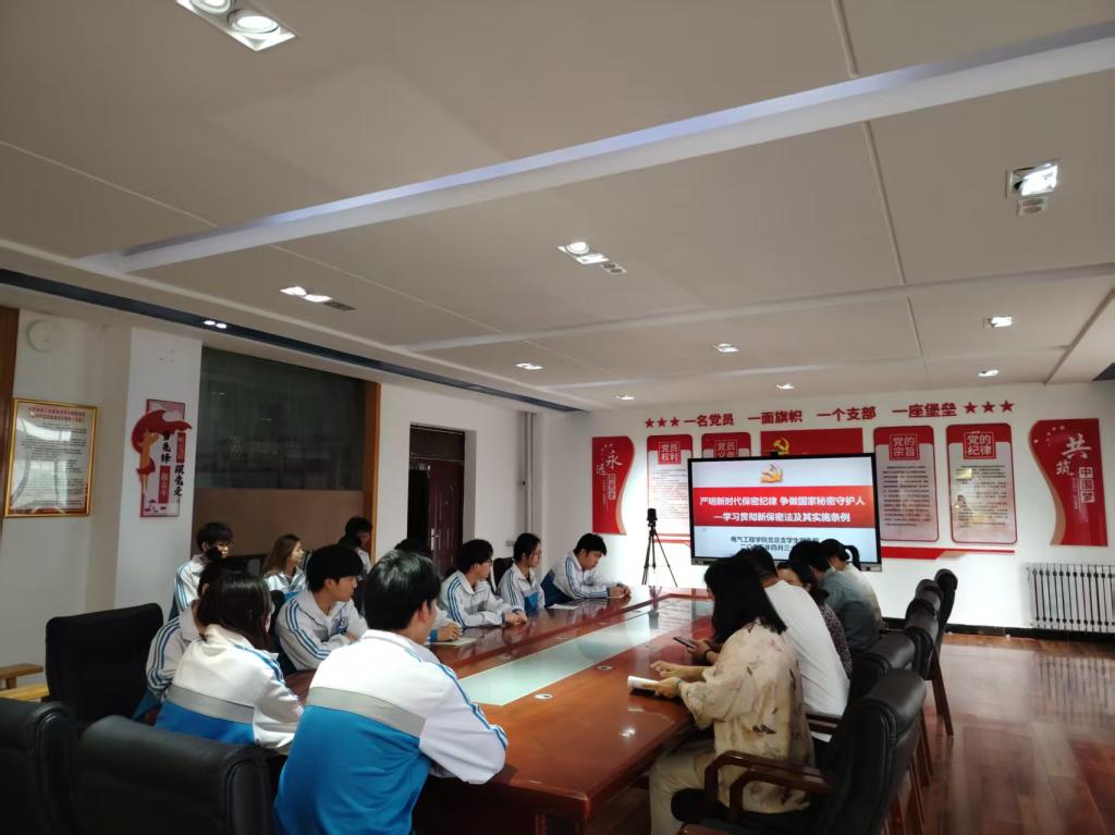 为深入贯彻落实新时代保密工作要求,增强学生党员的保密意识和责任感,根据我校《关于组织开展2025年保密宣传教育月活动的通知》安排,4月30日下午,电气学院学生党支部在行知楼A506党员活动室开展“严明新时代保密纪律 争做国家秘密守护人——贯彻新保密法及其实施条例”主题党日活动,活动由电气学院学生第一党支部书记李小燕同志主持。