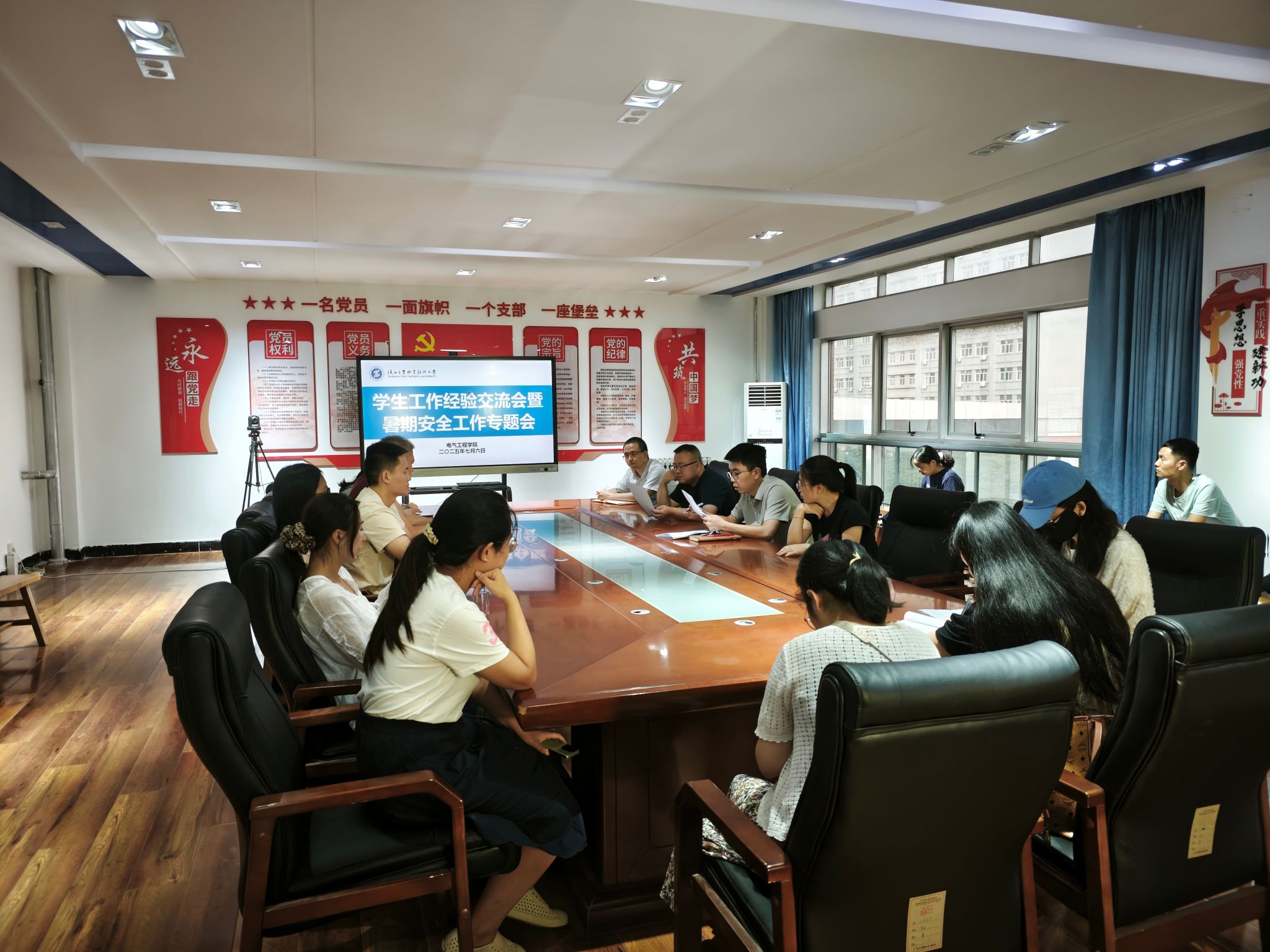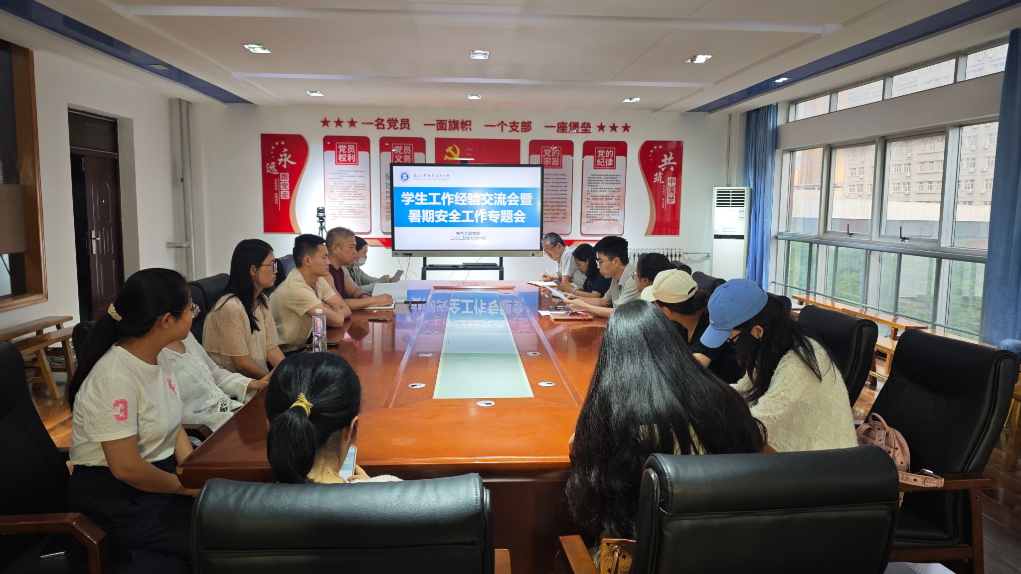 为深化学生工作提质增效,织密暑期安全防护网络,7 月 6 日,电气学院于行知楼 A506 党员活动室召开学生工作经验交流会暨暑期安全工作专题会。学院党总支书记刘其兵、全体辅导员及班主任出席会议,会议由陈春山主持。
