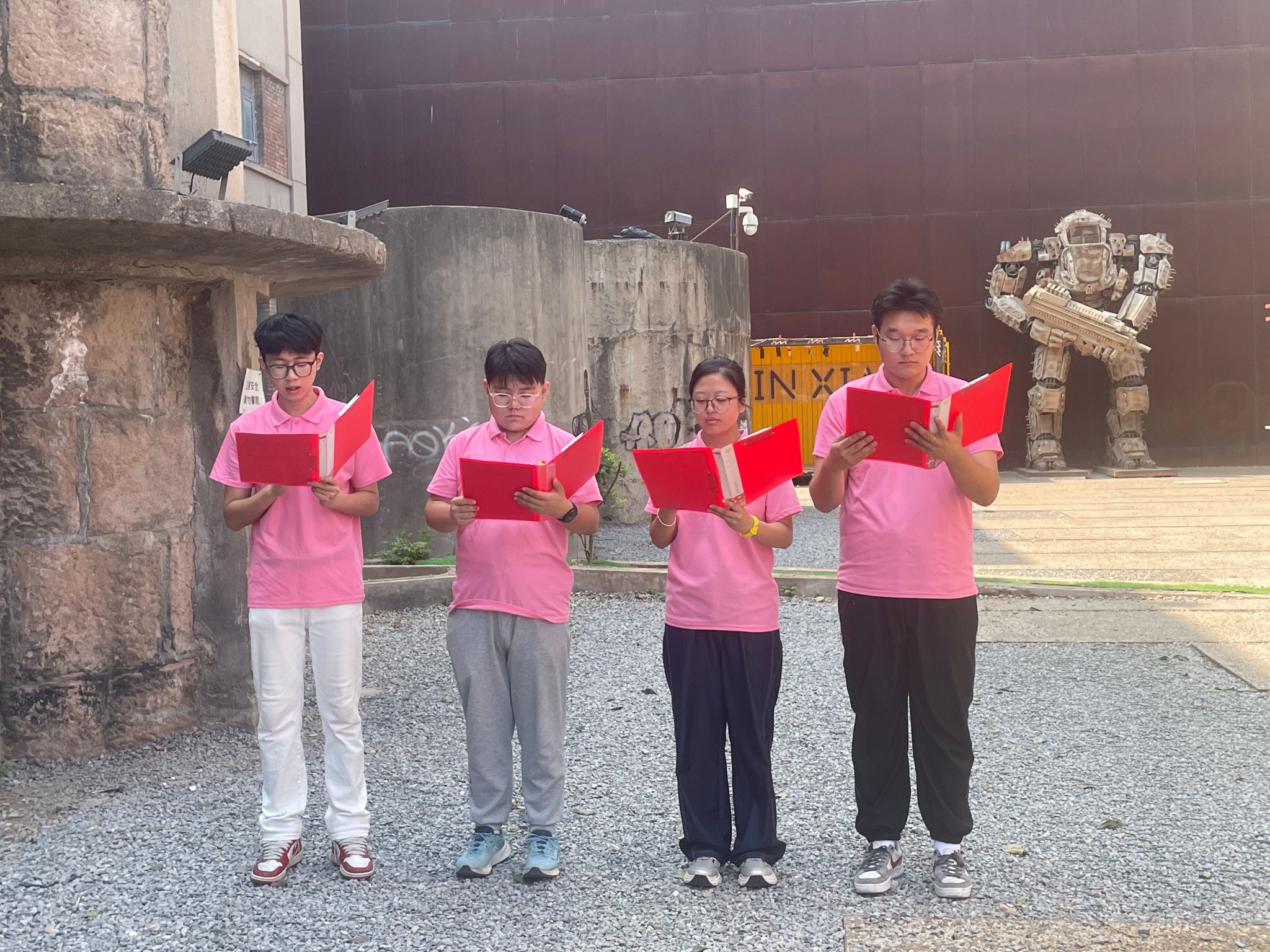 站在大华纱厂的红砖墙前,触摸着被时光打磨的机器零件,掌心下的锈迹仿佛是百年岁月留下的指纹。就在这新旧交织的静谧里,岳乐成同学的微宣讲如同一把钥匙,轻轻打开了历史的闸门。他的话语中带着轻快与温度:“抗战时期,是党的号召让工人们凝聚起力量,冒着轰炸守护机器不停产;新中国成立后,在党的指引下,这里通过公私合营焕发新生,织出了支援国家建设的经纬。如今的转型,更是党领导下文化传承与创新的生动实践,每一块红砖都镌刻着跟党走的足迹。”
