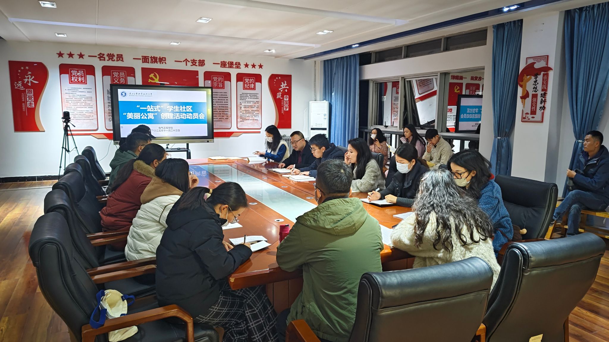 为扎实推进“一站式”学生社区综合管理模式建设,落实学校“美丽公寓” 创建活动要求,11月23日晚,电气学院在行知楼 A506党员活动室召开专题动员会,党总支书记刘其兵、全体辅导员、班主任参会。